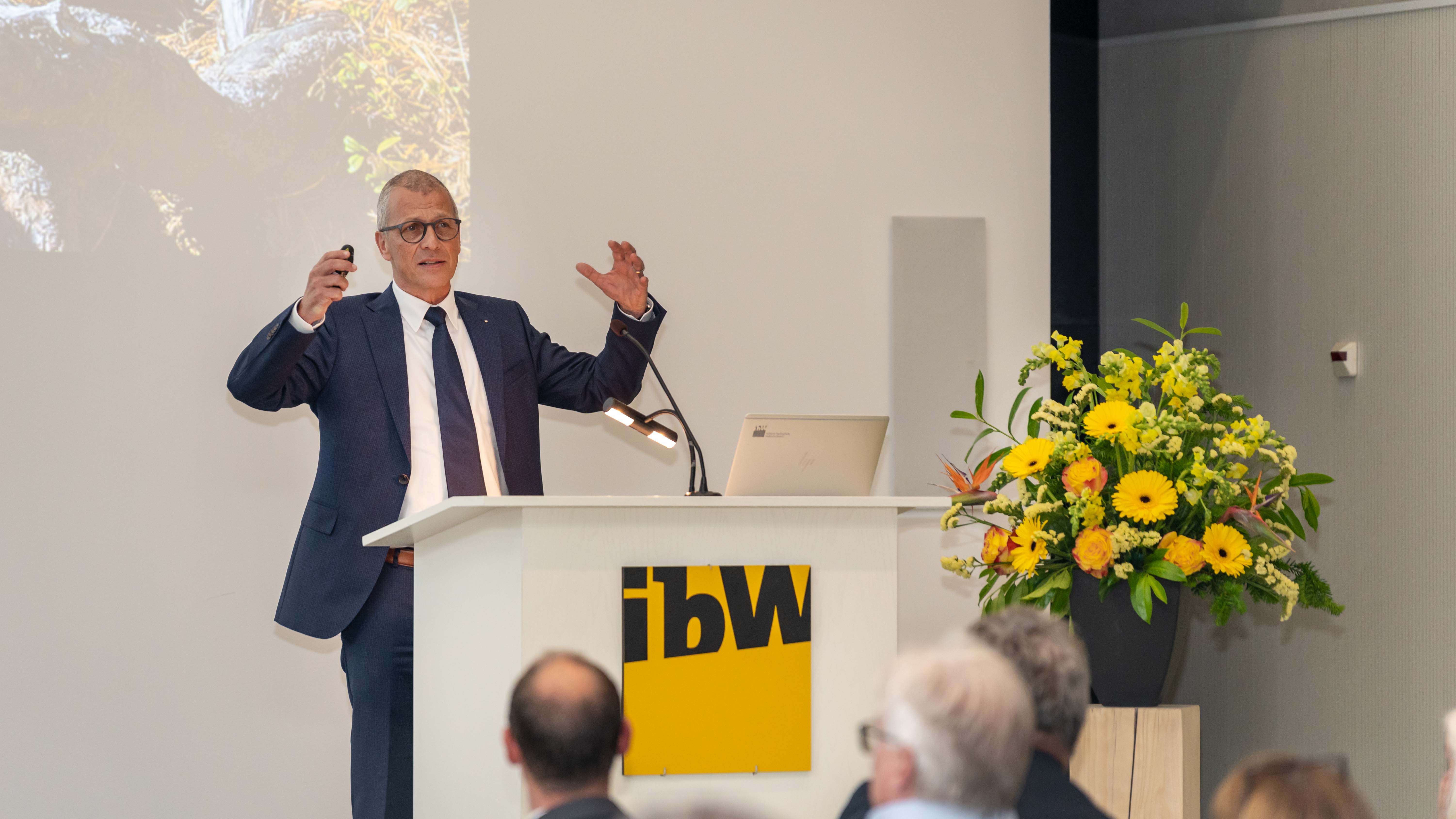 Abgerundet wurde die Veranstaltung durch eine äusserst aufbauende Grussadresse der Bündner Standespräsidentin Aita Zanetti, welche die Vielfältigkeit der ibW Angebote mit Ihrer schönsten Blumenwiese verglich. Daniel Fust, CEO der Graubündner Kantonalbank, blickte dann in seinem Gastreferat zum Thema «Wirtschaft heute – Herausforderungen für Arbeitgeber» in die Zukunft und motivierte die Anwesenden sich fit zu halten und die Entwicklungen mitzugehen und mitzugestalten.