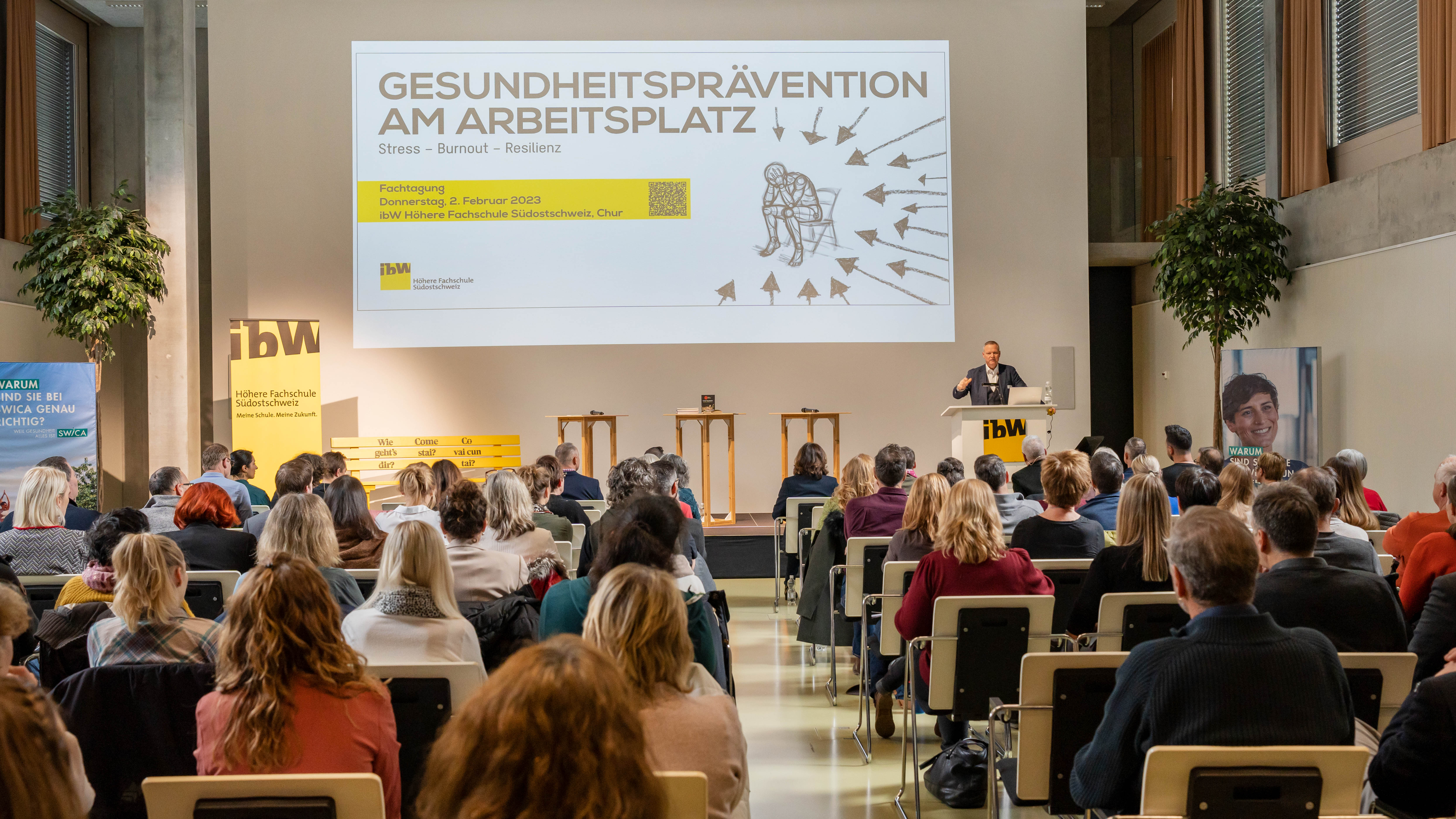Wie aktuell das Tagungsthema ist, zeigte sich nicht nur daran, dass alle Plätze am Fachanlass der ibW Höhere Fachschule Südostschweiz innert weniger Tage weg waren. Die Zahlen aus der Wirtschaft sind tatsächlich alarmierend, ist doch jede/r dritte Arbeitnehmer/-in der Schweiz heute von einem stress-bedingten Burnout bedroht - mit entsprechend einschneidenden Folgen für Unternehmen, die Wirtschaft und natürlich die Betroffenen selbst.