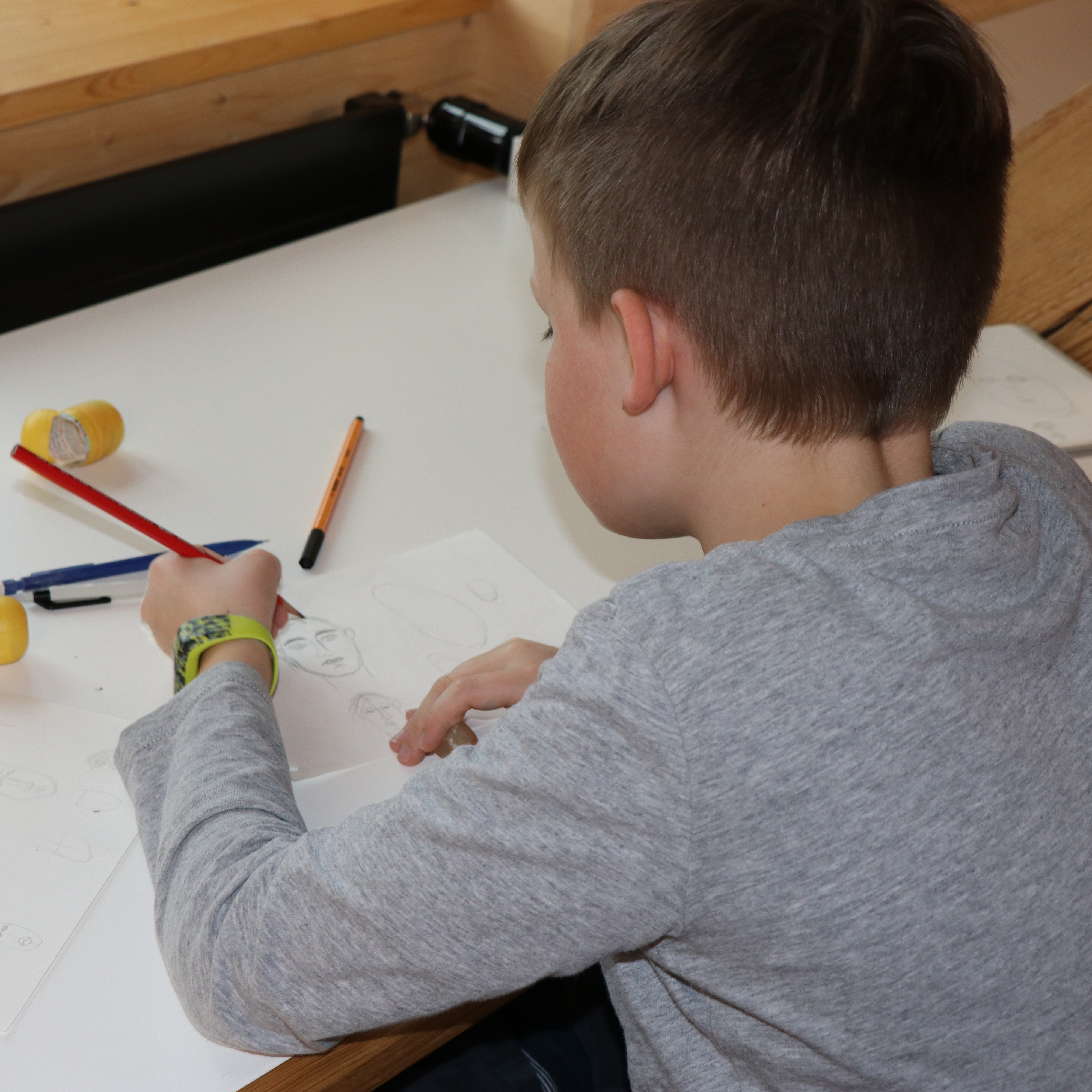 Gestern startete einer von vielen neuen Semesterkursen der Juniors Academy. Ausgerüstet mit ihrem ersten eigenen Skizzenbuch ging es auch gleich an die Arbeit. Ob es nun eine Prinzessin ist oder ein Schweine Basketball – wir sind schon gespannt auf die kommenden Ergebnisse.